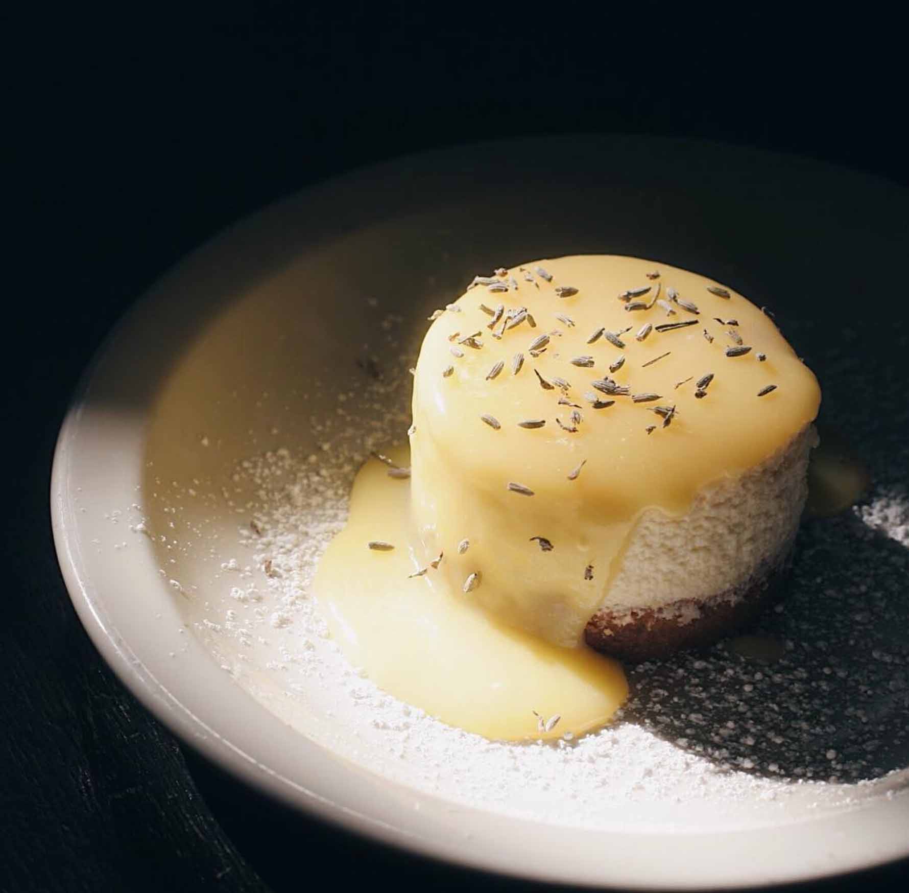 light cheesecake paired with locally harvested lavender, house-churned lemon curd & a gluten free crust